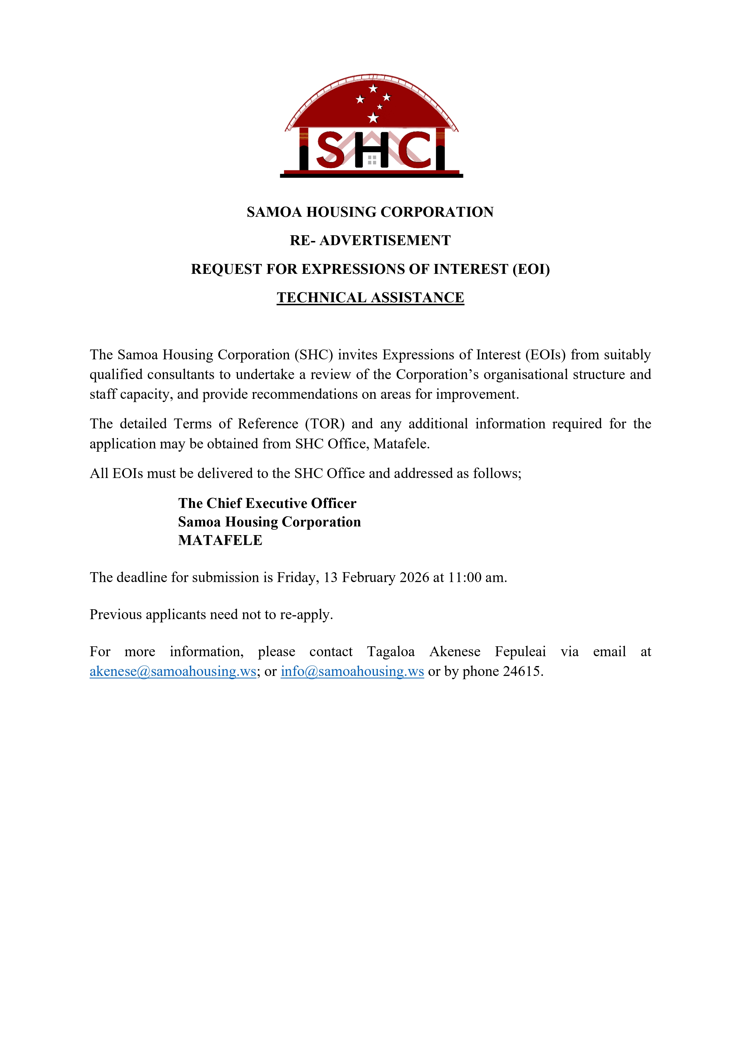 Tenders Home /Tenders Quick Navigation About UsMinisterBoardContact UsLatest NewsManagementPayment OptionsProducts and ServicesPublicationsStaffVacancies PUBLIC NOTICE – REQUEST FOR PROPOSALS Readvertisement – Expression of Interest